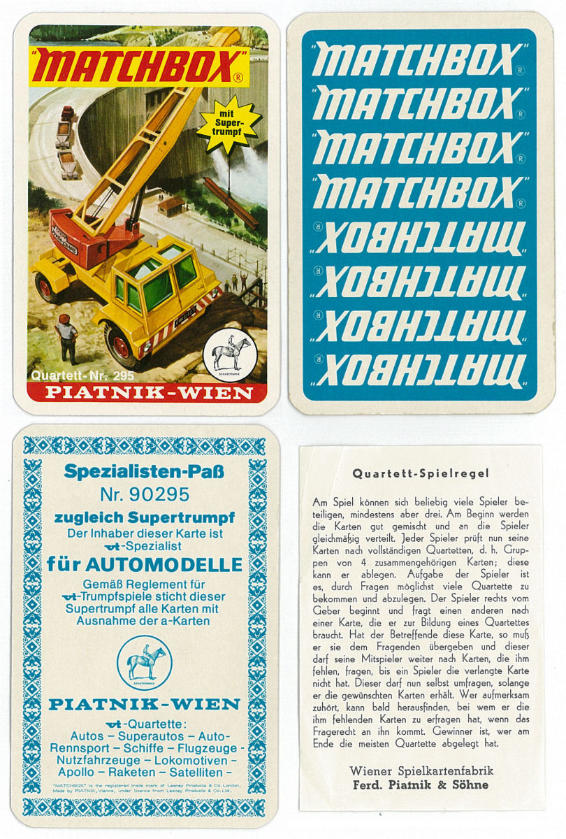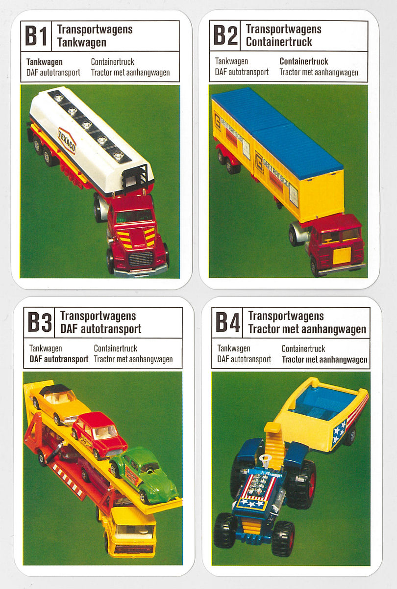 Playing cards depicting Matchbox models made in the 1970s under license from Lesney.